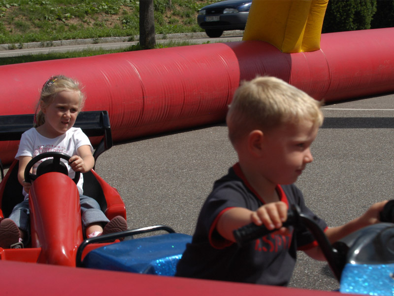 Pro Stunde können bis zu 100 Kinder fahren, bei einer Fahrzeit von zwei Minuten. Betreuung erfolgt durch einen Mitarbeitern von uns. Ein Eventmodul, das immer im Mittelpunkt steht. Das Zuschauen begeistert ebenso wie das Fahren. Viele Kinder starten Ihre ersten Fahrversuche überhaupt. Ein Erlebnis, welches Eltern und Kindern noch lange in Erinnerung bleibt.