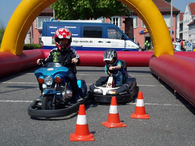 Diese sind für die Kinder leicht verständlich und langsamer und ruhiger wie unsere Quads. Es entsteht keine Lärmbelästigung oder Umweltbelastung. Die benötigte Fläche beträgt ca. 20x12m. Ein Stromanschluss mit 230 V genügt. Am besten geeignet sind geteerte Flächen. Bestens geeignet für Veranstaltungen mit hohem Besuchervolumen.