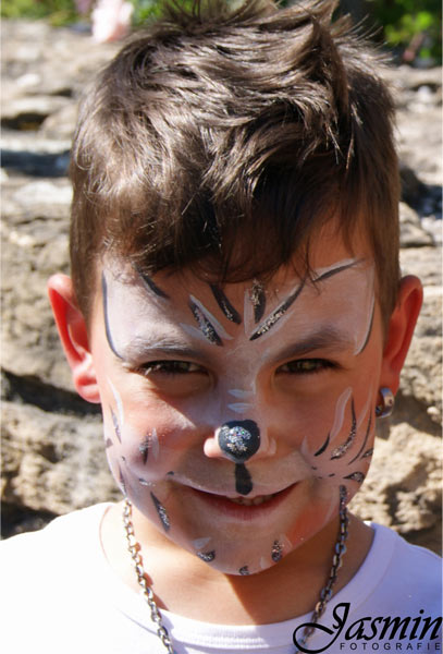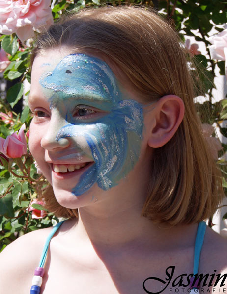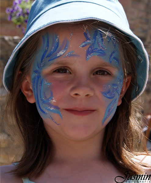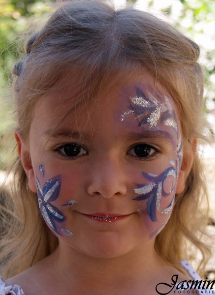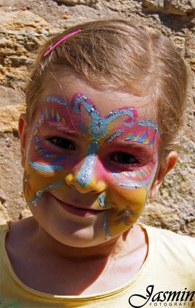 Geschminkt wird mit hochwertigen, wasserlöslichen Farben, die sich leicht wieder entfernen lassen.